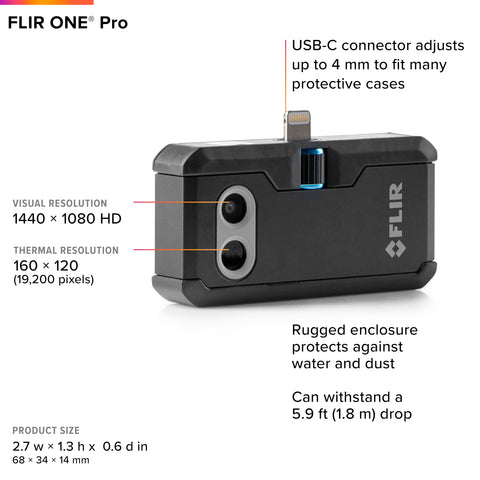 Details: The all new FLIR one Pro gives you the power to find invisible problems faster than ever. Simply attach the FLIR one Pro to your iOS phone or tablet, and turn it into a powerful thermal imager. With class-leading thermal resolution and its revolutionary MSX and vivid image processing, FLIR one Pro you see more details and get visual proof that you solved the problem right the first time. Whether you’re inspecting Homes, cars, electrical panels; looking for HVAC problems, or finding water damage, The new FLIR one Pro is a tool No serious professional should be without. Thermal Imaging Product with a frame rate of 9Hz or less are controlled by the U.S. Department of Commerce and classified under Export Control Classification Number (“ECCN”) 6A993.a for U.S. export control purposes and may not be exported, re-exported, or transferred to a “Military End-User” in any country except the U.S. or Canada, except as approved under a U.S. export or re-export license. “Military End-User” means national armed services (army, navy, marine, air force, coast guard), national guard, national police, government intelligence or reconnaissance organizations. Military End-User also means any person or entity whose actions or functions are intended to support Military End-Uses. Additionally, these products may not be used in the design, development, production or use of nuclear, chemical, or biological weapons or missiles.